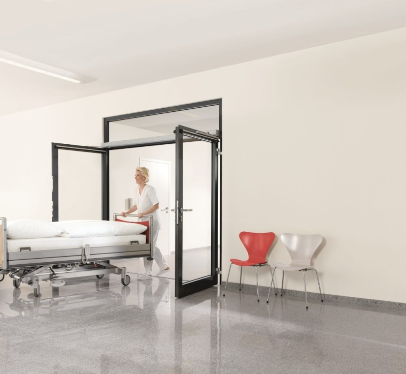 Ein Drehtürantrieb erleichtert das Öffnen von Türen und findet vorrangig Anwendung in öffentlichen Gebäuden wie z.B. Krankenhäuser oder im hochwertigen Ausbau.